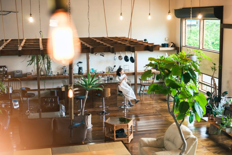 天井や壁をコンクリート打ちっぱなしの内装で仕上げ、キレイにまとめすぎずに建物の構造を感じられるようにすると良いでしょう。