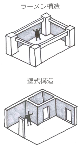 間取りをリノベーションによって自由に設計したい場合は、住戸内に構造壁のないRC造のマンションの方が自由度が高いといえます。壁式構造の場合は内部にある構造壁の位置を前提にプランニングする必要があります。