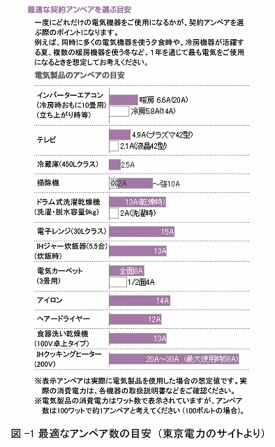 図-1は東京電力のサイトに載っている最適なアンペア数を選ぶ目安です。