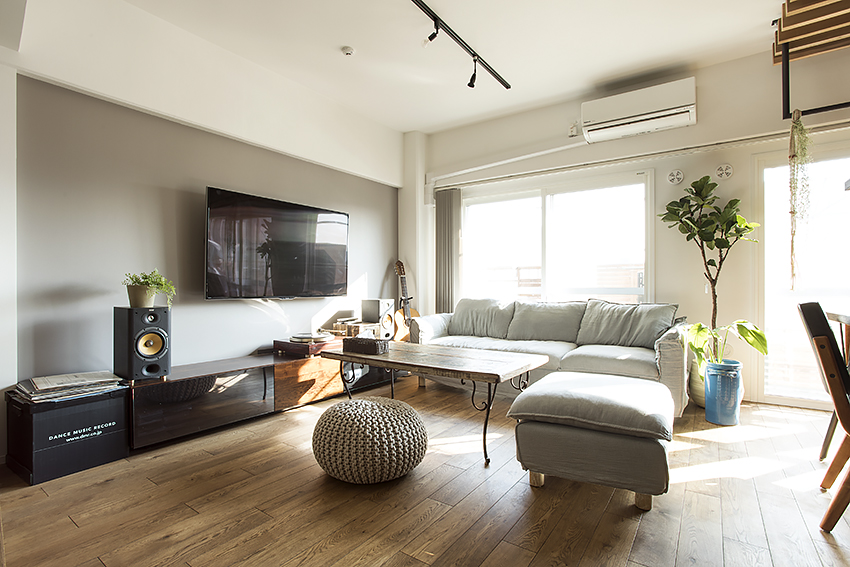 リノままのリノベーション事例でもたくさんのテイストに無垢のフローリングが使われています。