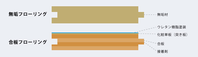 無垢フローリングは、新築マンションでよく使用される合板フローリングやシートフローリングなどとどのようなちがいがあるのでしょうか?