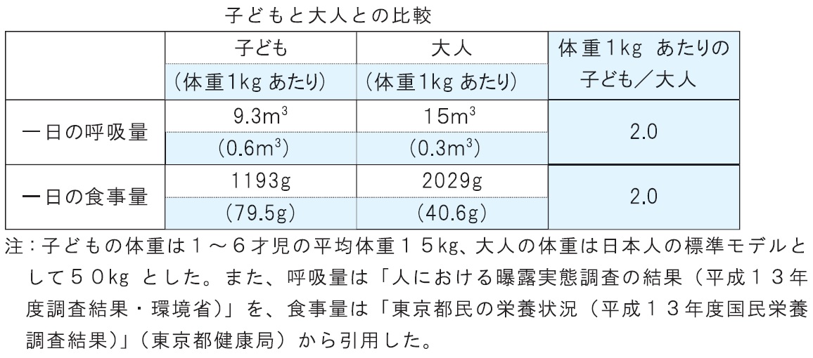 体重1kgあたりに換算すると子供は大人の2倍の空気を吸っていることになります。