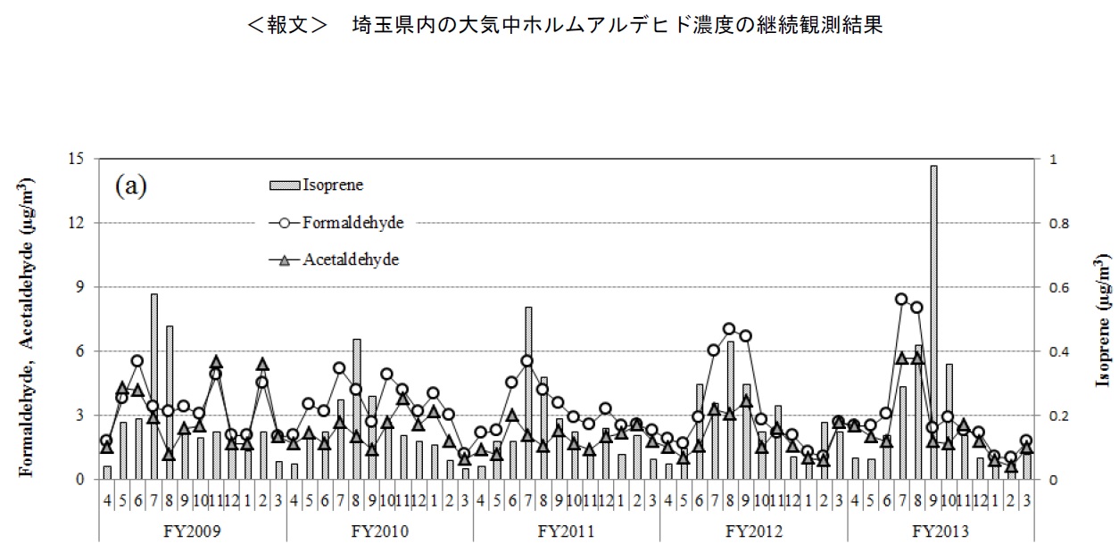 図は埼玉県内の大気中のホルムアルデヒド濃度の結果です。
