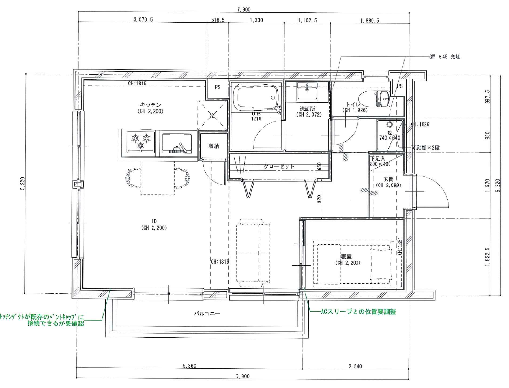 まずは、上記のポイントをクリアして、間取りに落とし込みました。