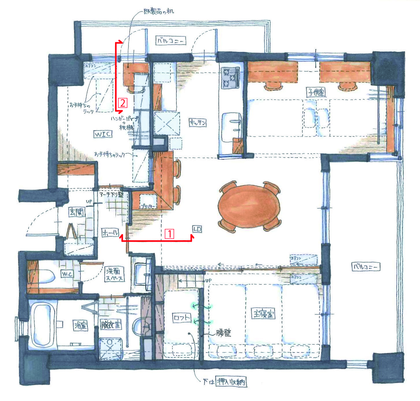 「特に小学1年生になったばかりの弟くんが、目の届くところで勉強や読書をできるように」という奥様のイメージ。