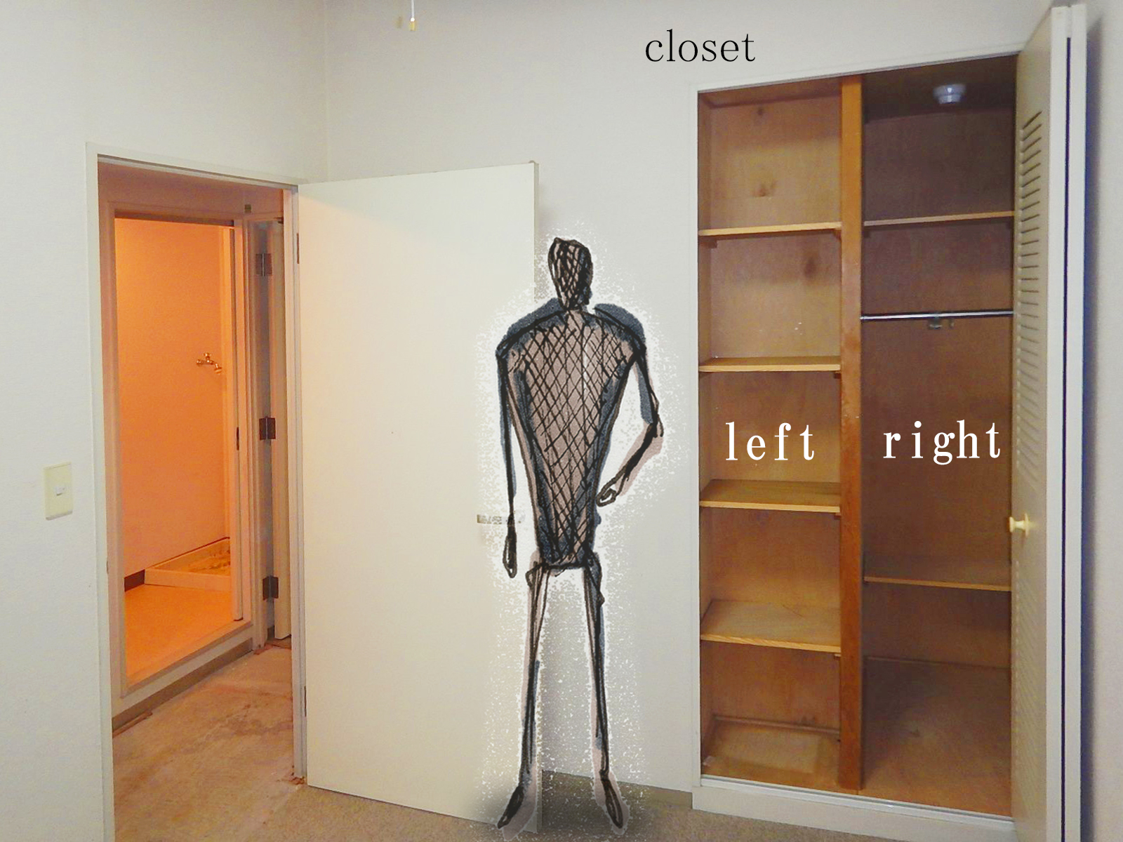 三つ折りの布団が入りそう、服が横並び(服の腕側が正面に来る)で掛けられそう=深い