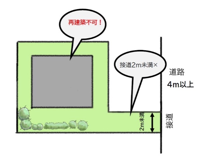・前面道路に2m以上接道しているか?(敷地の内部でも2m以上あるか?)