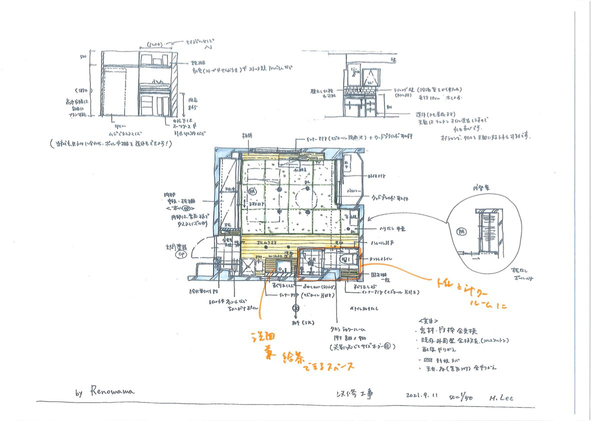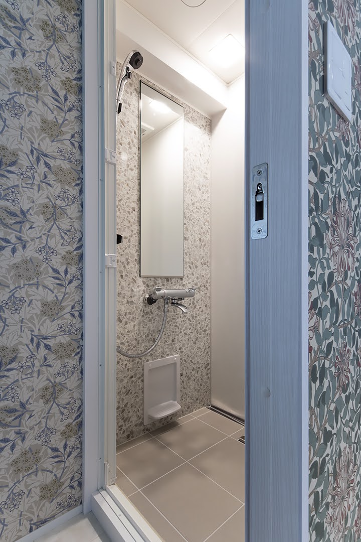 別フロアにご家族がお住まいなので、お風呂や食事は別の階を使うということで、お客様のお部屋にはミニシャワールームのみを設置しました。