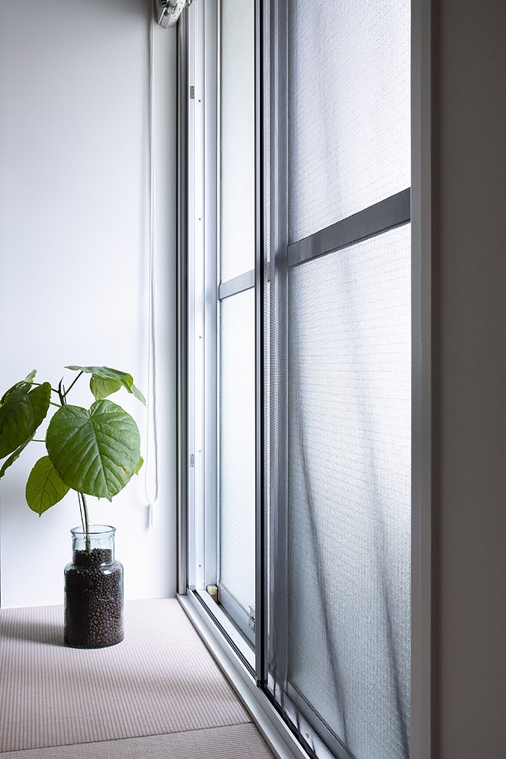 また、元々網戸のない窓だったため、全箇所に網戸を取り付けました。採用したのは「インナーアミド」。普段は両端に網戸を固定することができ、使うときだけ引き伸ばすタイプなので、汚れにくく、窓の外の景色がよく見えるという優れものです。