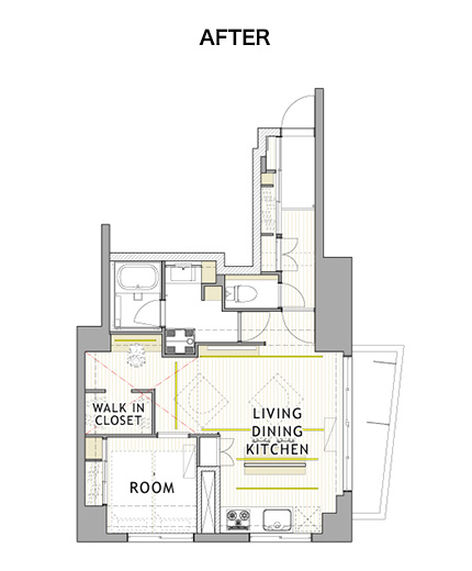 トイレはちょっと遊んで、エレガントに。収納も壁面を有効に活用しスッキリしたプランにまとめました。