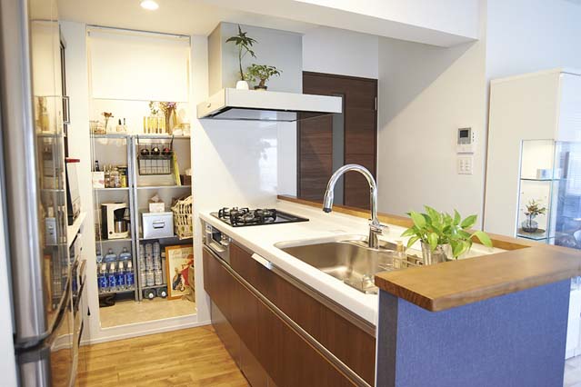 キッチンの奥には使い勝手のよいパントリーをつくりました。