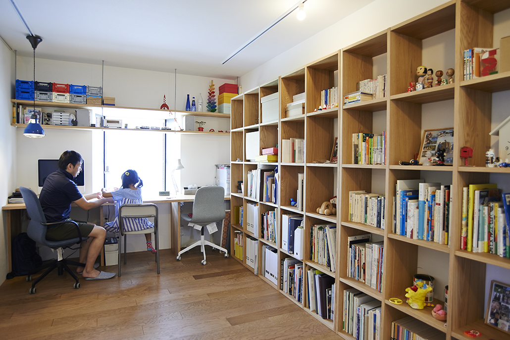 イチバンのこだわりは、家族三人が並んで作業ができる書斎です。