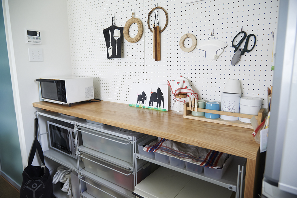 ぱっと使いたいものが多くなってしまうキッチンには“敢えて出しておく”収納が必須。