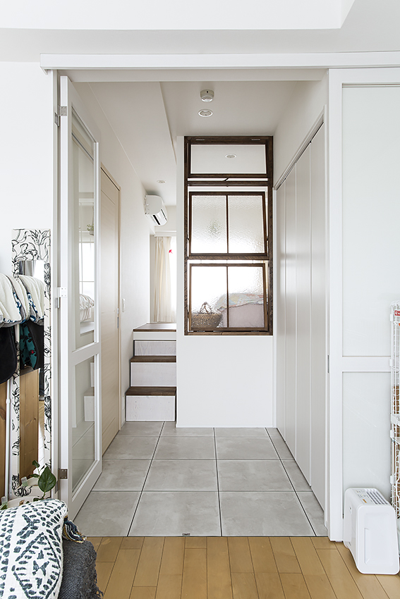 扉を閉めても、寝室側の素敵な内窓が覗いています。