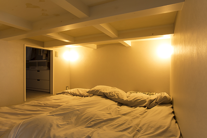 寝室の上のロフトは将来、子どもの遊び場にする予定だそう。