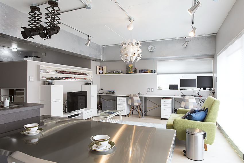 ちなみに、映画の撮影現場にありそうな黒い照明機器は、ご夫婦のお気に入りで、リノベーションする前にすでに購入されていたものだそう。