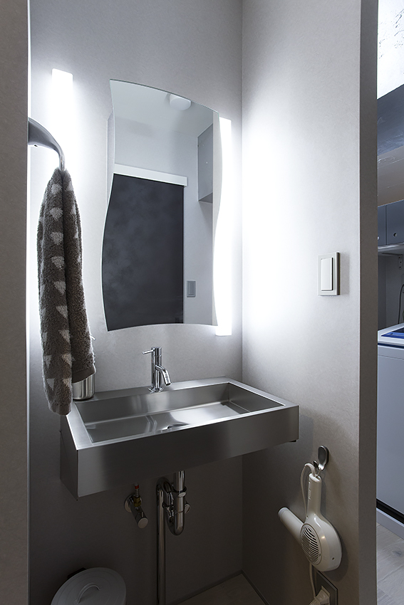 脱衣所も浴室の扉や床のシルバーグレー。