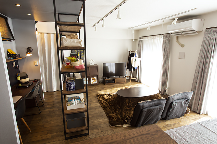 この棚が埋まるまではまだリビングとつながった一体の空間。