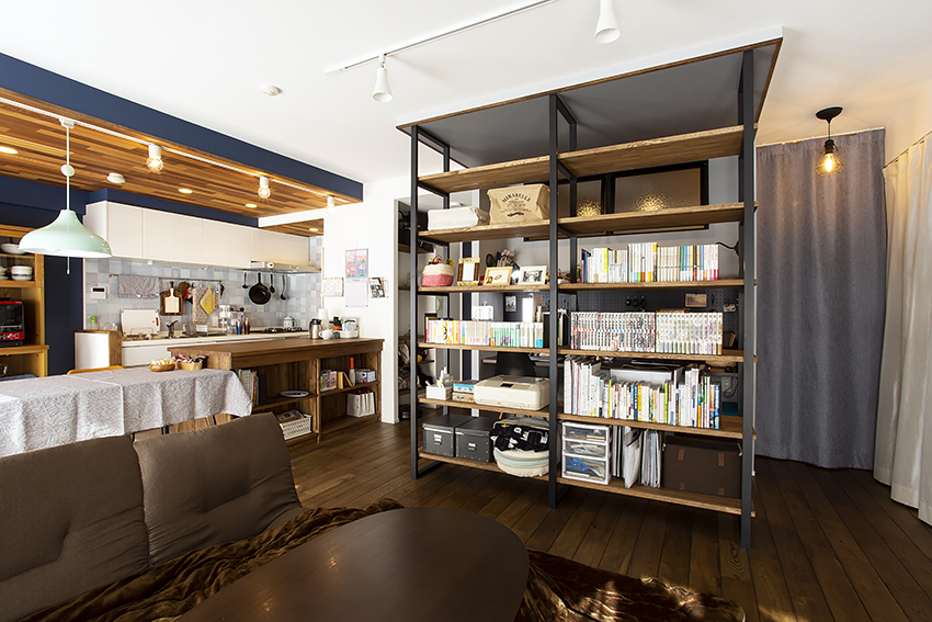リビングの真ん中にそびえる本棚。