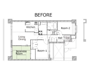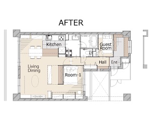 広々としたリビングとキッチン、板張りのオシャレな天井、ここまではよくあるリノベーション。