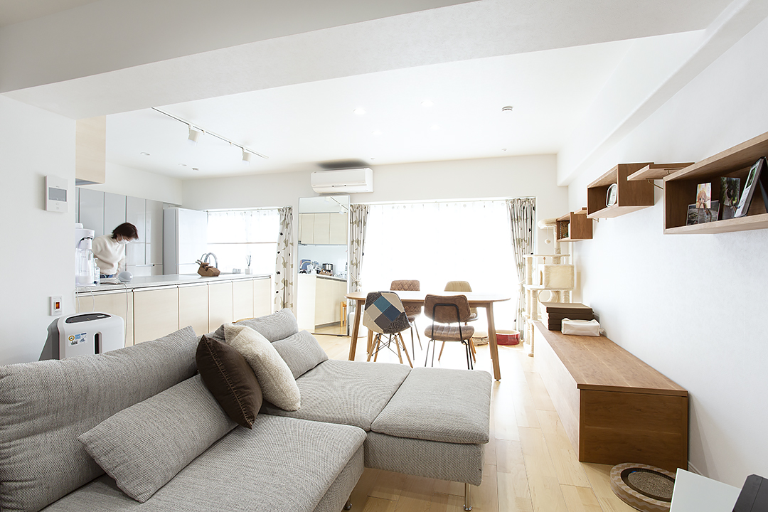 狭かったLDKを開放的に、広いリビングダイニングへと間取りを変えました。