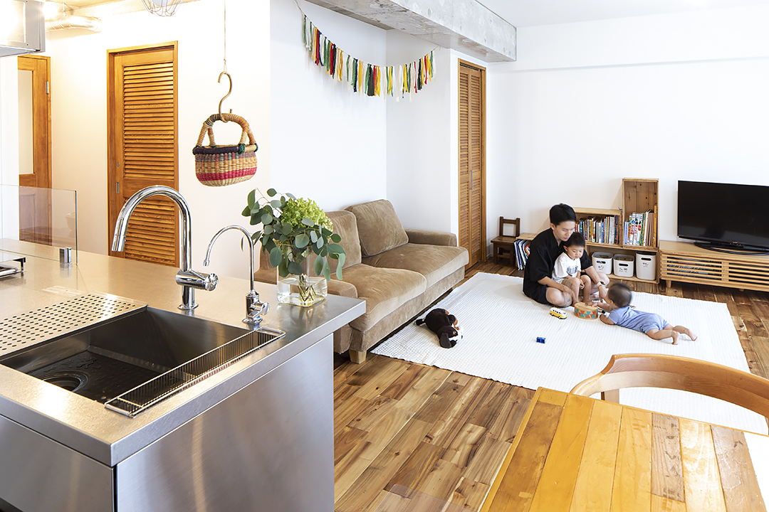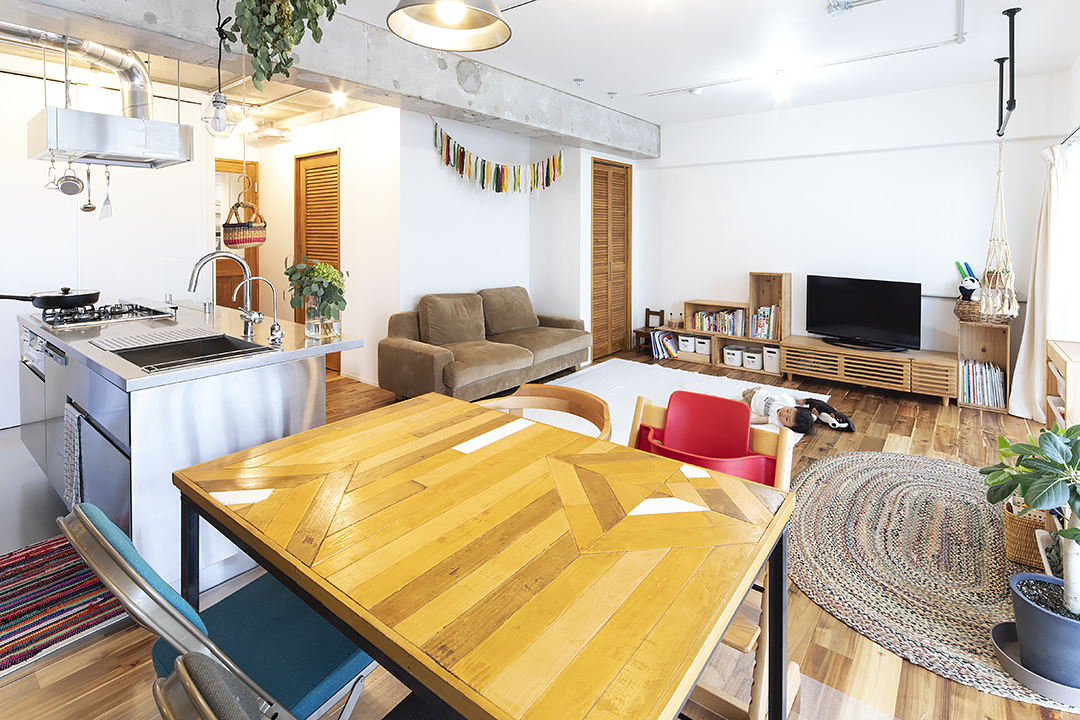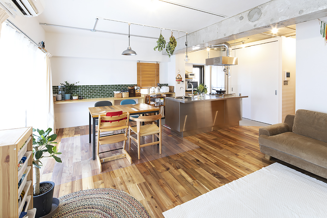 奥様「元々、リノベーションには興味がある程度でしたが、いろいろなデザインを見ているうちに、自分たちもやりたい!という気持ちになってきました。新築の家も内見しましたが、少し味気なく感じ、気にいるものが見つからなかったこともリノベーションを決意した理由のひとつです。新築を買うなら賃貸でいい。せっかく自分たちの家を持つなら、セレクトした好きなものに囲まれて暮らしたい!と思うようになりました。」