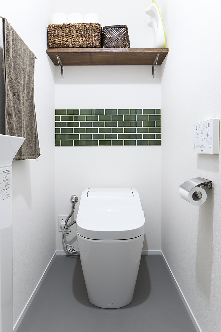 その代わり、お気に入りのタイルを使ったり、使いやすいように造作棚を取り付けたり。