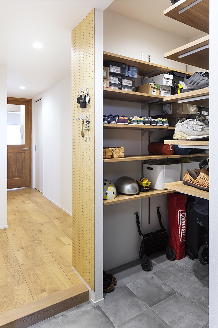 元の2倍程度、シューズクローゼットを広げたので、ベビーカーでそのまま入ることができるように。