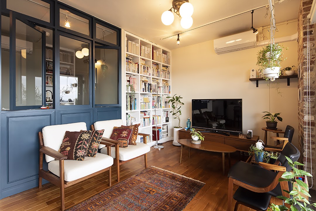 25年前にニューヨークにお住まいだったというご夫婦。その頃からずっと「こんな家に住みたい!」と思っていたグリニッジビレッジのアパート。記憶にある憧れだった内装を思う存分詰め込みました。お家の中での夫婦の距離感を大切に「ふたりでくつろぐ時間」と「ひとりになりたい時間」を両立させた、どこか素朴でタイムレスな雰囲気の住まいが完成しました。
