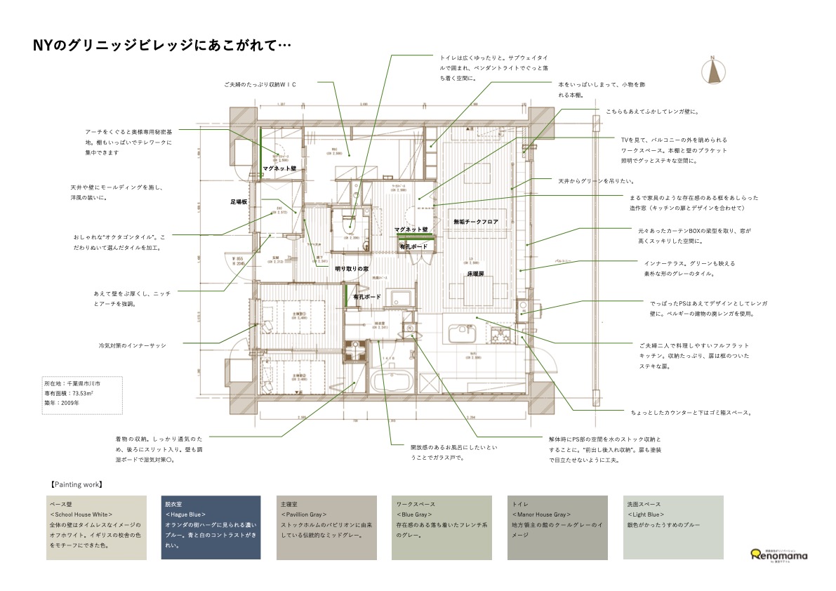 ↑グリニッジビレッジの本とFarrow&Ballの本2冊を参考にしながら、イメージづくりを進めました。